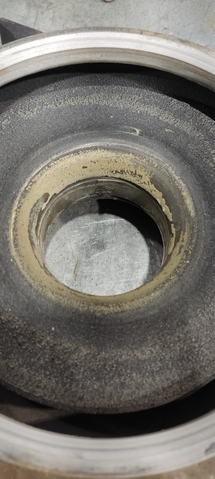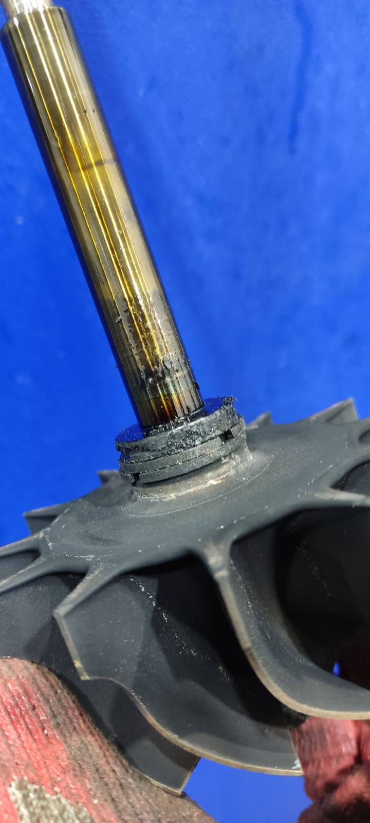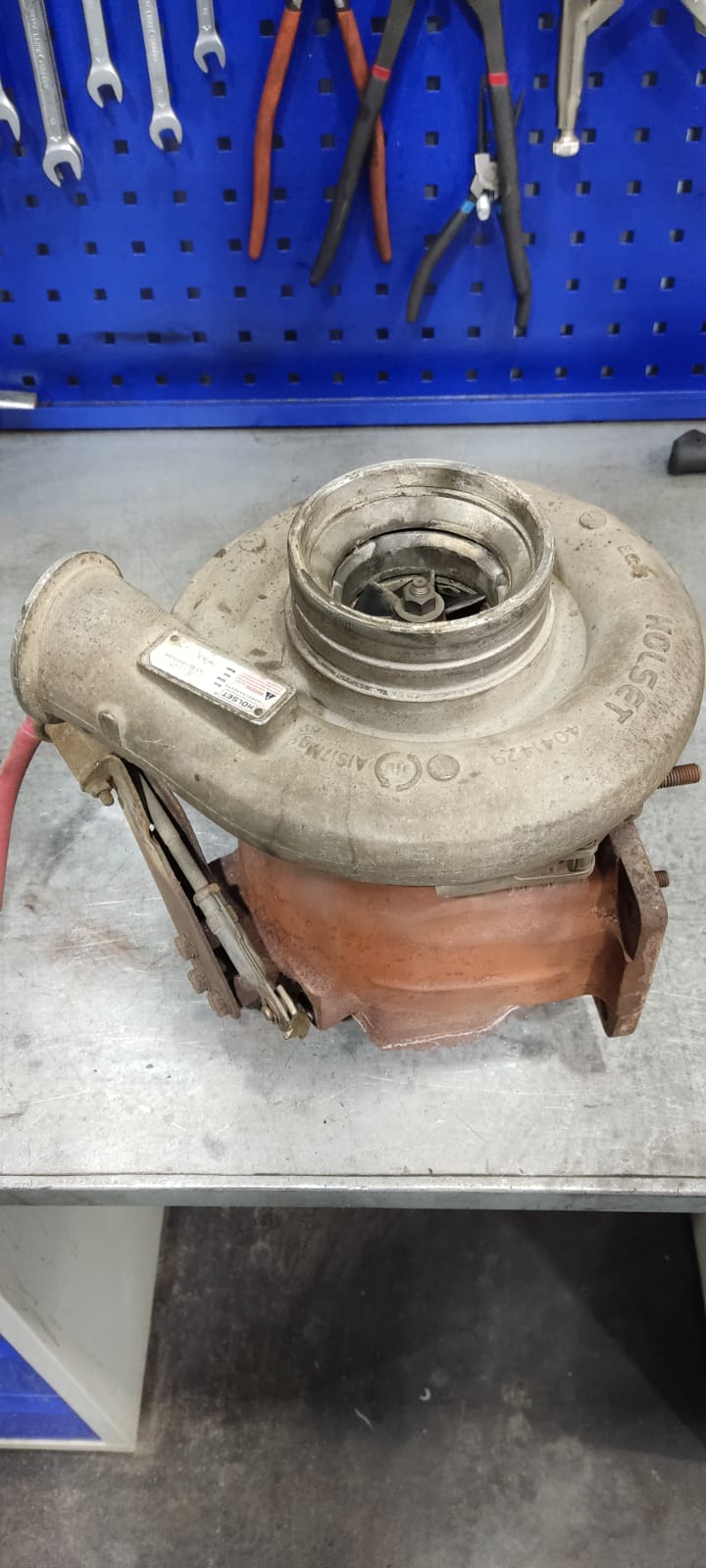 Жалоба на свист при наддуве. При дефектовке выявлено попадание по компрессорному колесу из-за попадания постороннего предмета (резиновый уплотнитель воздушного фильтра), закоксованность и абразив на втулках скольжения. Заменены детали вращения, отбалансирована и проверена герметичность на стенде.